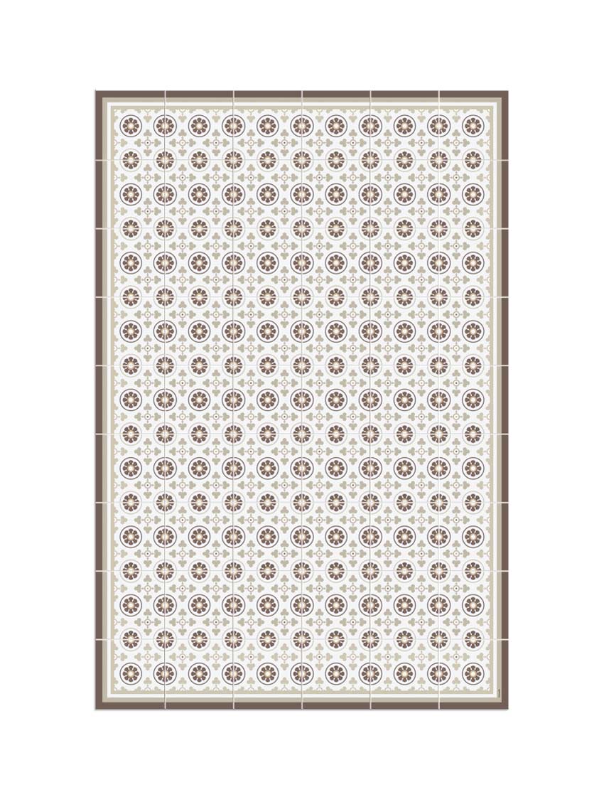 La alfombra vinílica Llull combina colores tierra en una preciosa baldosa hidráulica, inspirada en el escritor, filósofo y teólogo Ramon Llull.